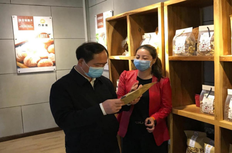 2021年12月21日上午,梧州市委書記蔣連生(左)到公司食用菌基地調研,了解企業發展現狀,以及生產銷售、品牌運營等情況。他鼓勵企業堅定發展信心,加強科技研發,做優核心產品,持續做大做強。